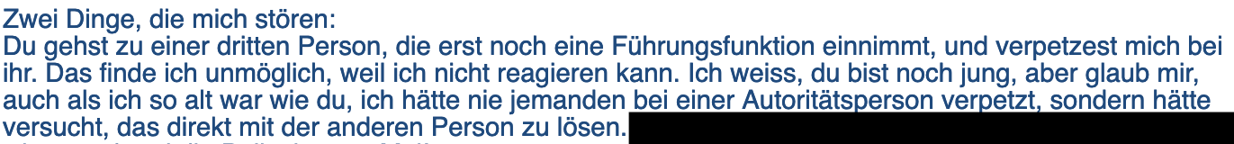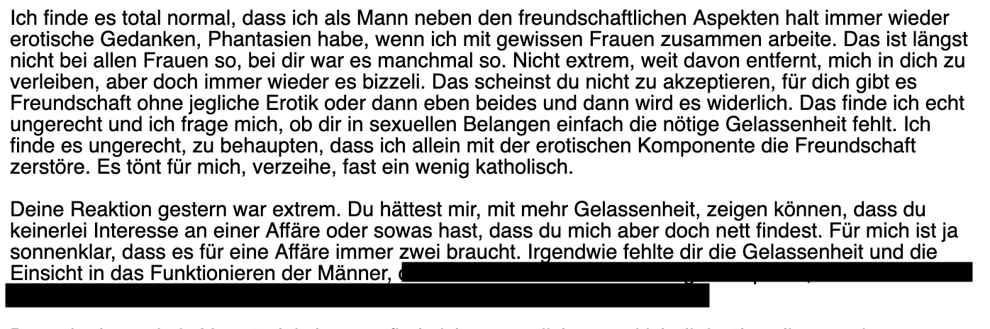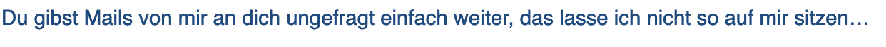 Wenn man sich gegen Belästigung wehrt, wird man mit solchen Drohgebärden eingeschüchtert. Für mein eigenes kleines #metoo hat er sich immerhin selber inkriminiert und alles schriftlich festgehalten. Obwohl ihm die Einsicht fehlt, wurden die Emails immer panischer.